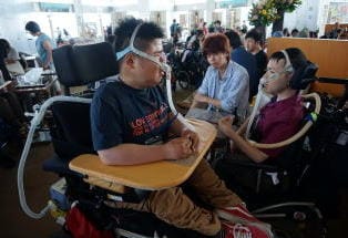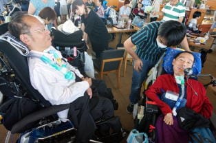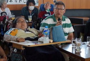 【内容】 呼ネット代表と事務局員が挨拶の後、参加者が自己紹介をしました。今年のテーマは「呼吸器ユーザーと差別」ということで、皆さんが受けた差別について語って頂きました。参加者のひとり、日本ALS協会の岡部さんは5月の国会厚生労働委員会に参考人として招かれながら障害を理由に一転して出席を拒まれました。この経験について岡部さんは「大変ショックだった。なかなか本当の理由が分からなかった。」と話していました。他には入店拒否、バス乗車拒否、コンサート入場拒否などの事例が出ました。解散後、16名が「呼ネットBar」(会場:韓国料理シクタン)へ移動し、交流を深めました。