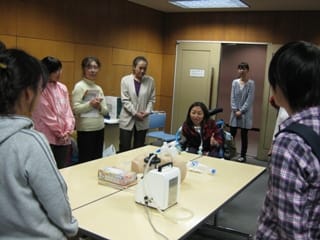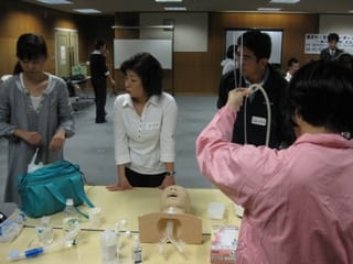 さすがに人体で吸引するわけにはいかないので、吸引モデルを使用し呼ネットメンバーの吸引方法を参加者に教えます。