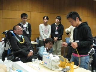 飛鳥山訪問看護ステーションの福田Nsによる気管切開の説明や吸引機の取扱いについての説明。
